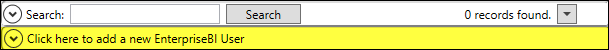 EnterpriseBI User Setupallows you to create new BI Tool users, edit existing users, or delete users. The number of users allowed is dependent upon the number of users defined within your Licensing Setup. When a record is created within EnterpriseBI User setup, a record for that user is also added to EnterpriseBI User Information Setup.