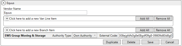 Contact EWS Group and confirm that the version of MoversSuite that you are on has the Equus Upload module enabled. Please note that there is no specific security setup needed to enable users to access Equus functionality. Refer to Security Modules for more information.