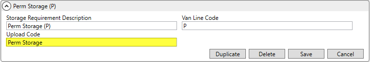 Update Storage Requirement Setup records to map Upload Code values for each supported type.