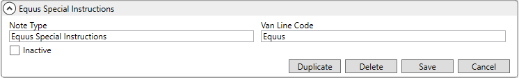 Setup Area: Note Type Setup