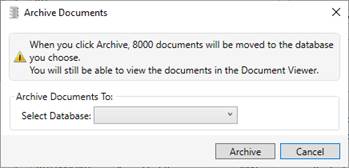 The Archive Documents prompt tells you the number of documents in total that you are about to archive. The ‘Select Database’ dropdown contains all the active databases so you can select one and click Archive.