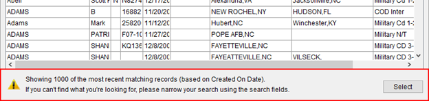 Figure 9: Find warning upon reaching 1,000 records in the search