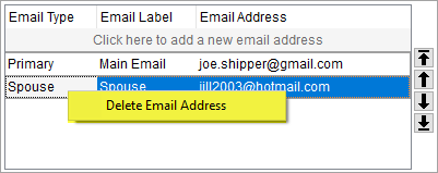 To delete a record, open the order in edit mode, right click the record to be deleted and select Delete Email Address.