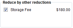 Figure 31: Reduce by other reductions example When Include Reduction is in effect, the Reduce by other reductions section will list the other reductions belonging to the group or item than can further reduce the open reduction by. | |