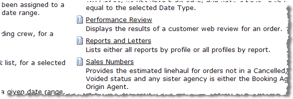 All reports available within the Report Manager are also available to the MoversSuite application. Reports listed within the Report Manager can be linked to MoversSuite through the Report Setup by a Render Type setting of “Reporting Services Report. “