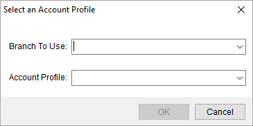 The Select an Account Profile dialog prompts you to enter a branch of service and to select an Account Profile to base the new order on.