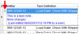 If a note is attached to the task item, then an option to expand () and collapse () will be present within the data grid.  Expanding will allow the user to view the note (add/modify task notes through Edit Task).