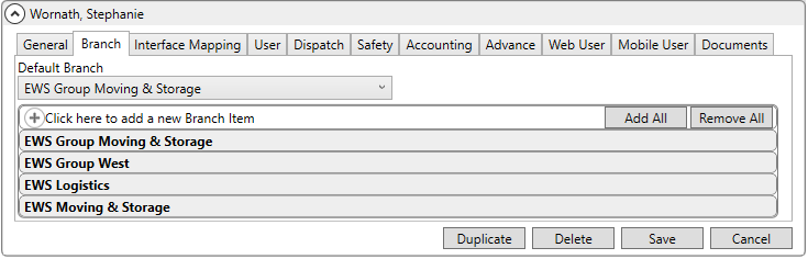 Optionally, you can set the Responsible Role to “None” to enable selecting a specific person from the Responsible User setting. This list includes all active personnel defined on your system. Of note, this person must be assigned to the same branch as the order record to be assigned automatically. In other words, the branch of the order must match one of the branches set within the Branch tab of their Personnel Setup record.