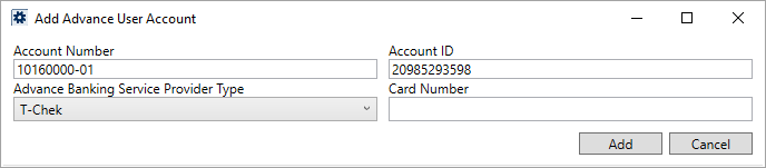 Select T-Chek as the Advance Banking Service Provider Type.