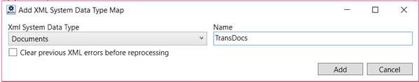 Define XML System Data Type Map records for processing the TransDocs documents.