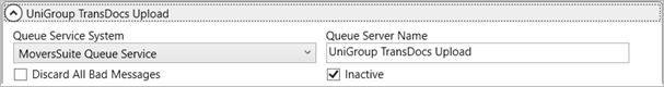 Verify the queue service setting are correct and functioning. Optionally, add Queue Service Message Type Items for the services you wish to receive a copy of the message exchanged between the process and the MoversSuite Queue Service. The type of messages related to TransDocs includes: UniGroup TransDocs Download UniGroup TransDocs Error Download UniGroup TransDocs Upload