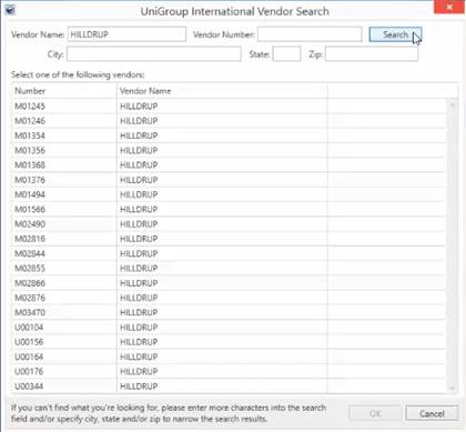Figure 15: UniGroup International Vendor Search