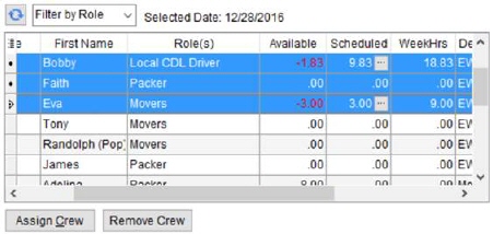 Figure 52: Assign Crew grid with selected records