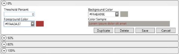 The Threshold Percent can go to any high limit you want. For example, if you wish to show over-capacity values in different colors, you can continue to go above 100%. Let us say you wish to show red for up to 10% over capacity and black for anything over that. Then you can setup something like the following: