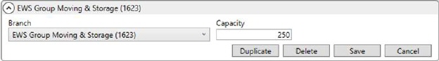 MoversSuite Administration > Operations > Capacity Settings