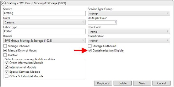 To enable Containerization Status assignment functionality, check the Containerization Eligible flag on supported Local Service Type Setup records.
