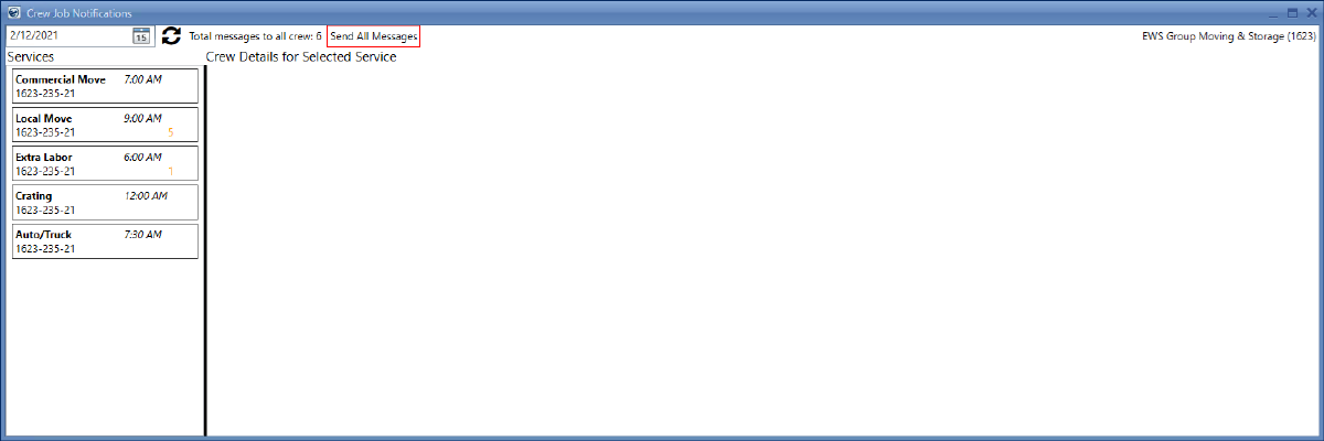 •To load the Crew Details for Selected Service table, click on any of the services shown in the Crew Messaging Services pane.