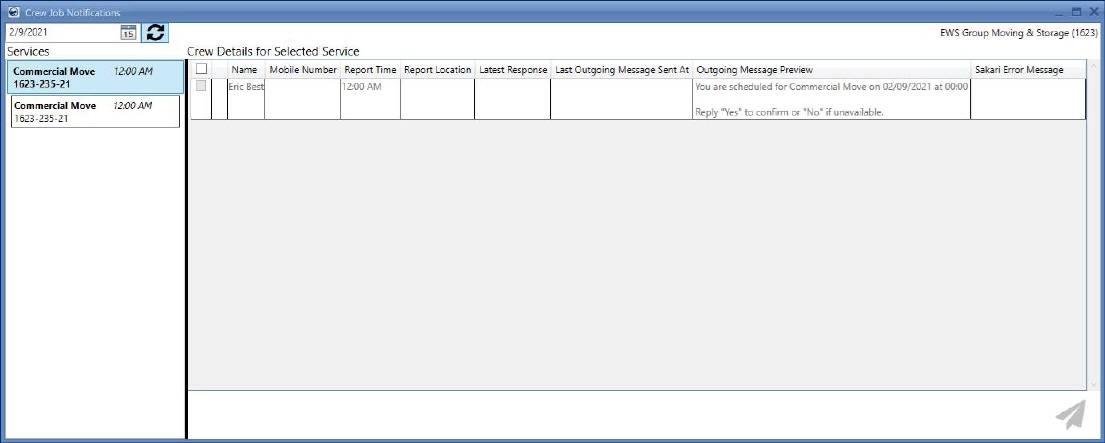 •For sending messages individually, you can checkmark the crew names from the Crew Details for Selected Service table and then press send.
