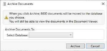 The Archive Documents prompt tells you the number of documents in total that you are about to archive. The ‘Select Database’ dropdown contains all the active databases so you can select one and click Archive.