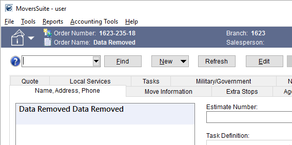 If an order is connected to an external application, such as a van line, and a download is received, this could potentially reset all the order data, including all the PII. Therefore, if a removal request comes in, you may contact the van line prior to executing the data removal on the MoversSuite side.