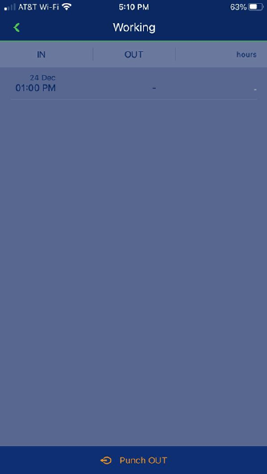 Click Punch In at bottom of screen. If already punched in, the Punch OUT option will appear.