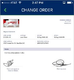 Accepted signatures display on the output of the Change Order, Internal Summary, and Job Summary.