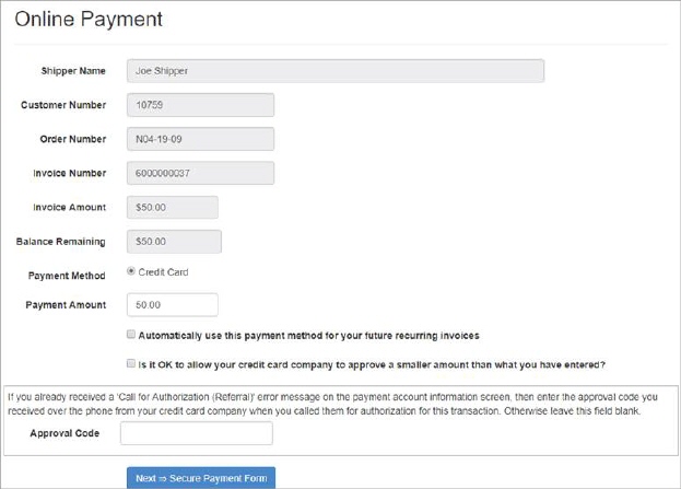 Next => Secure Account Information Entry Form If processing a payment capture, as specified within the Setup Credit Card/Bank Online Payment screen, then the Next button includes the Secure Account Entry Form text.