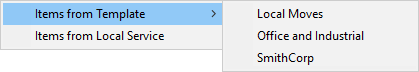 You can also import Local Services into an existing quote through the Insert menu. Choosing Items from Local Service opens the Import from Local Services dialog, allowing you to insert items from one or more plans or services.