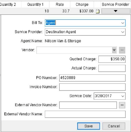 Select a provider from the list of participating agents assigned to the order as the third party payable on the quote.  The provider will be either the Origin or Destination Agent assigned to the order and the drop-down menu will display the name of the agent, if set.