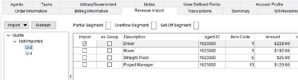 Refer to the following topics for more information on importing revenue from a quote: