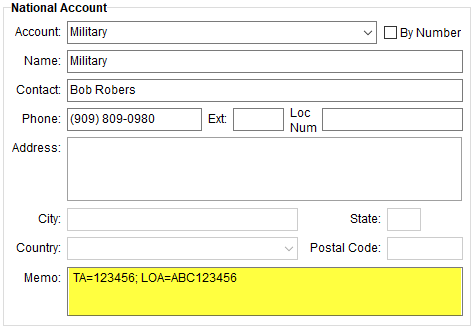 You can attach additional customer order memo for National Accounts through the Memo field within the Billing Information tab. This allows you to provide additional information to help identify the correct order and account for billing.
