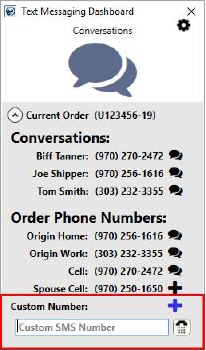 Conversations are associated to an order. Therefore, you must open the order, then initiate the conversation to a party through the Text Messaging Dashboard.