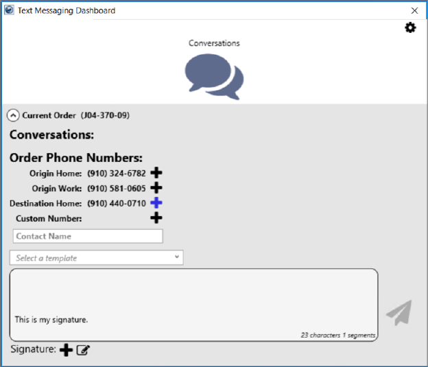 •A signature can be added in your text messages through the User Text Settings option which will be shown at the bottom of your conversations. Use Edit Signature window to add new or edit an existing signature.