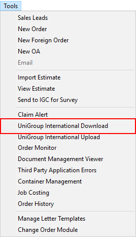 Additionally, you can sync an order with the UniGroup International system manually through the UniGroup International Download option available through the Tools Menu.