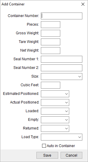 Select a load type to describe the container from the list of values defined within Container Load Type Setup. |