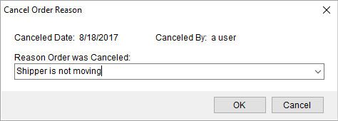 If the Is Cancelled Order flag is set on the MSS Order Status value you are setting, then you are prompted to select a reason for the cancellation when you save the record. The prompt appears through the Cancel Order Reason dialog.