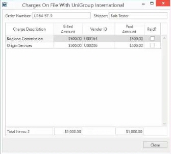 Closes the Charges On File With UniGroup International screen.