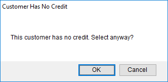 Figure 37: Customer Has No Credit warning dialog