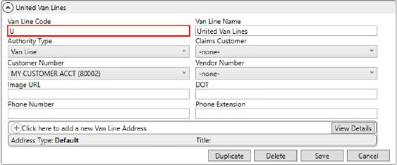 Van Line Setup