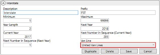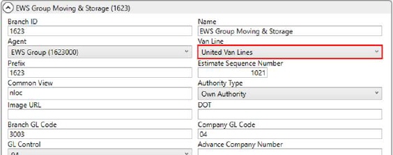 The Van Line Setup record that the order links to must either have a Van Line Code of “M” for Mayflower Van Lines or “U” for United Van Lines.