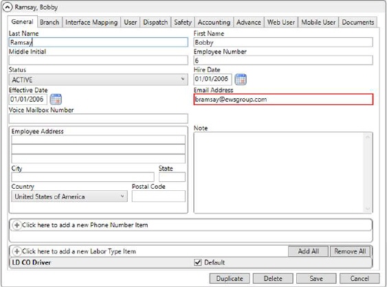 One or more people assigned to the service or trip must have the Email Address set within their Personnel Setup record. The personnel must be assigned to the service within the Dispatch Center tab in Local Dispatch or assigned to the order through a trip within the Current Driver Activity tab in Long Distance Dispatch.