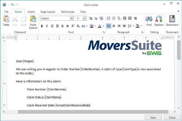There is also a Bookmark option allowing you to insert MoversSuite data directly into the document.