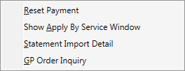 Shift Use the Shift key in conjunction with the Tab key to move backwards through the data fields and functions within the Payment Application screen. | ||||||||||||||