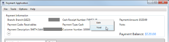 Right-click on the Cash Receipt Number. This produces the option to Edit or Void the cash receipt.