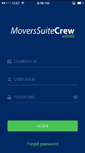 The login screen prompts you to enter your company identifier along with login credentials. The COMPANY ID is provided to you by EWS. The USER NAME and PASSWORD are established within the Mobile User tab within Personnel Setup.