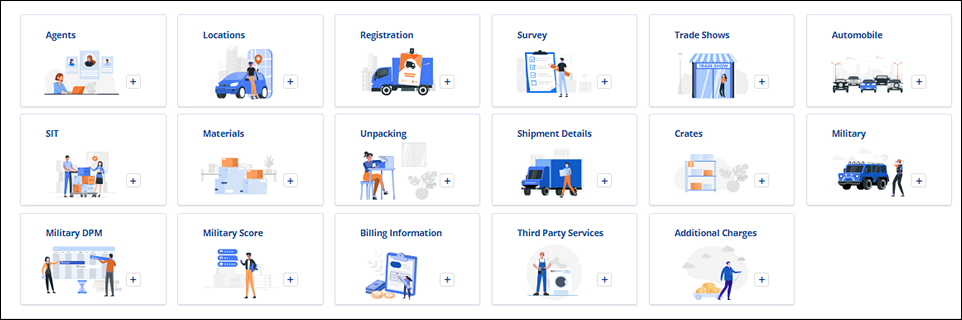 Only tiles for services that have not already been added show. As tiles are used, tiles disappear. When used, the tile’s name and info then list within collapsible sections. As shown in Figure 109. “Packing” has been added and is listed; therefore, the “Packing” tile no longer is shown.