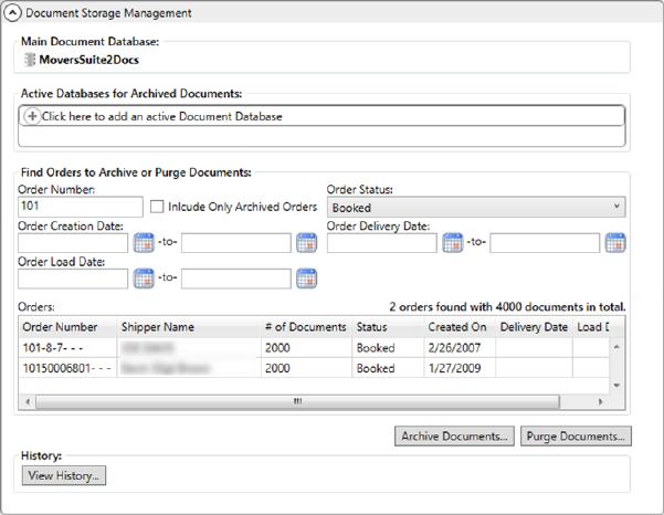 The ‘Active Databases for Archived Documents’ is exclusive to Archive Documents functionality. Use the Find Orders to Archive or Purge Documents section to narrow down your search results for Purge Documents functionalities.
