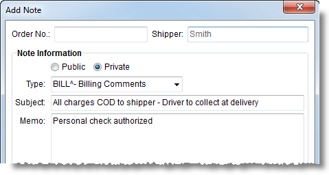 The option to upload notes into UniGroup Memo Pad for an order is only available at the time at which the note is created within the Add Note dialog.