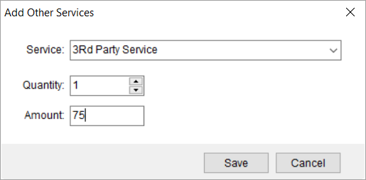 Available by adding or editing a record through the Other Services tab within the Enter Actuals screen, the Add Other Services dialog allows you to enter specifics on the additional revenue items that associate to a Local Services request.