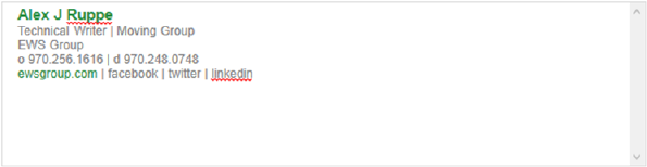 Underneath the title entry is a tool bar with options allowing you to format the signature text, import images and hyperlinks, and more. Select the text to update within the entry area below and select the formatting option you wish to be in effect.
